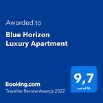 Blue Horizon Luxury Apartment cuenta con un balcón y una zona de estar, y dispone de comodidades modernas como climatizador, además de TV con canales por satélite y TV de pantalla plana con canales vía satélite. El establecimiento está realzado por suelos de mármol y amueblado con un sofá. Los huéspedes tienen a su disposición camas con almohadas de plumón hipoalergénicas. Una bañera de hidromasaje, un inodoro separado de la ducha y una ducha están incluidos a petición. Además, encontrarás secador de pelo y toallas.